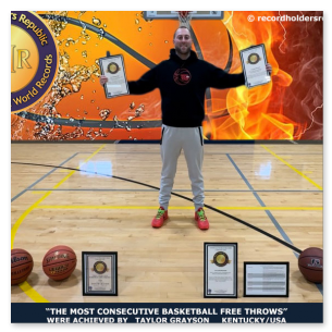 This was accomplished as direct "swish" baskets with no assistance or rebounding machine.